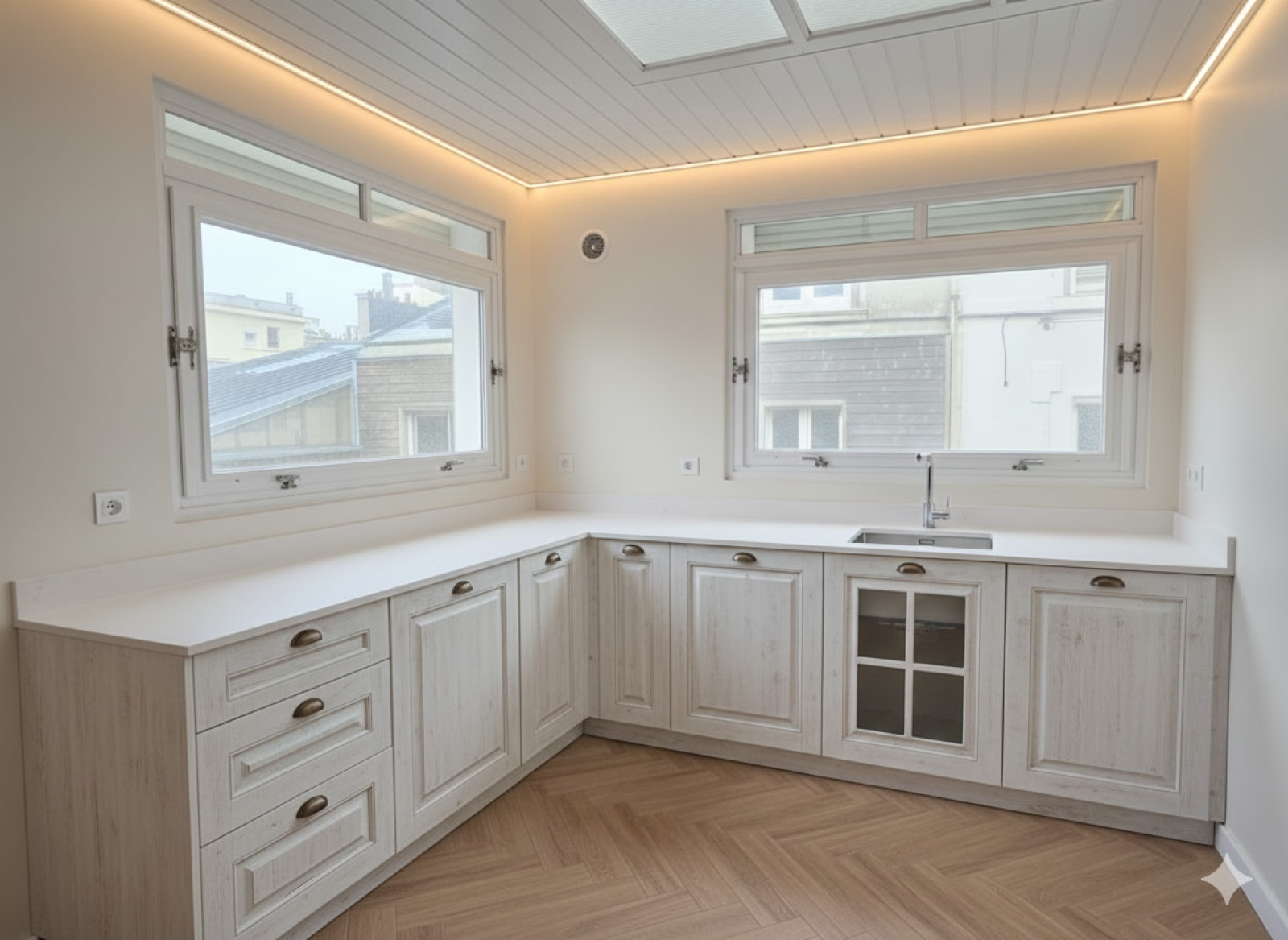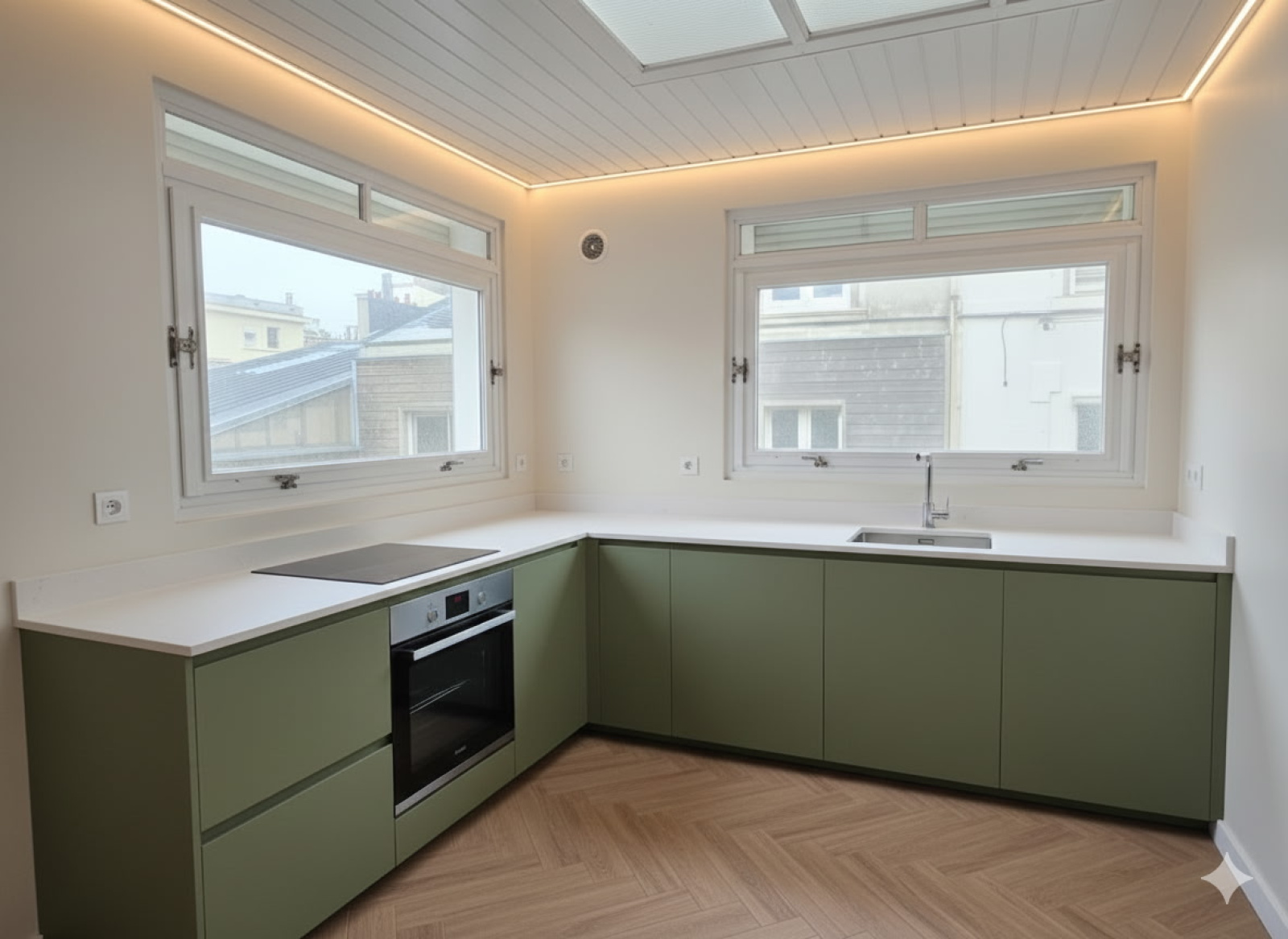 ( projection IA pour le coloris de la cuisine et la terrasse photo non contractuelle quelques modifications peuvent etre apportées )