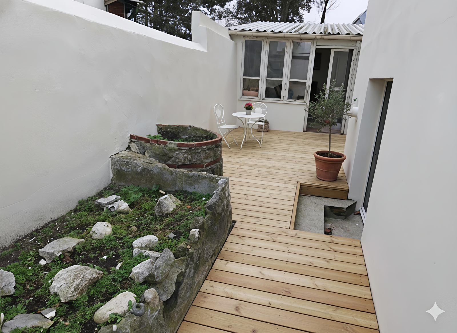 en extérieur une grande terrasse bois .