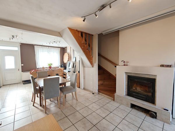 Nous vous proposons cette Maison de ville d'une surface habitable de 63 m2. Elle se compose d'une entrée, d'un salon séjour, d'une cuisine aménagée et équipée, d'une salle d'eau avec douche et vasque, d'un poêle à granulés et d'un WC indépendant. A l'étage : deux chambres 10 et 11 M2 . A l'extérieur, la maison bénéficie d'une cour avec terrasse de 20m2. Un garage complète ce bien avec la possibilité d'y créer une dépendance (studio - entrée indépendante - une chambre de 13M2 y est déjà aménagée à l'étage) et/ou de rétablir le garage. pas de vis à vis, grand parking devant la maison . Maison proche de toutes commodités : commerces, écoles, transport, marché