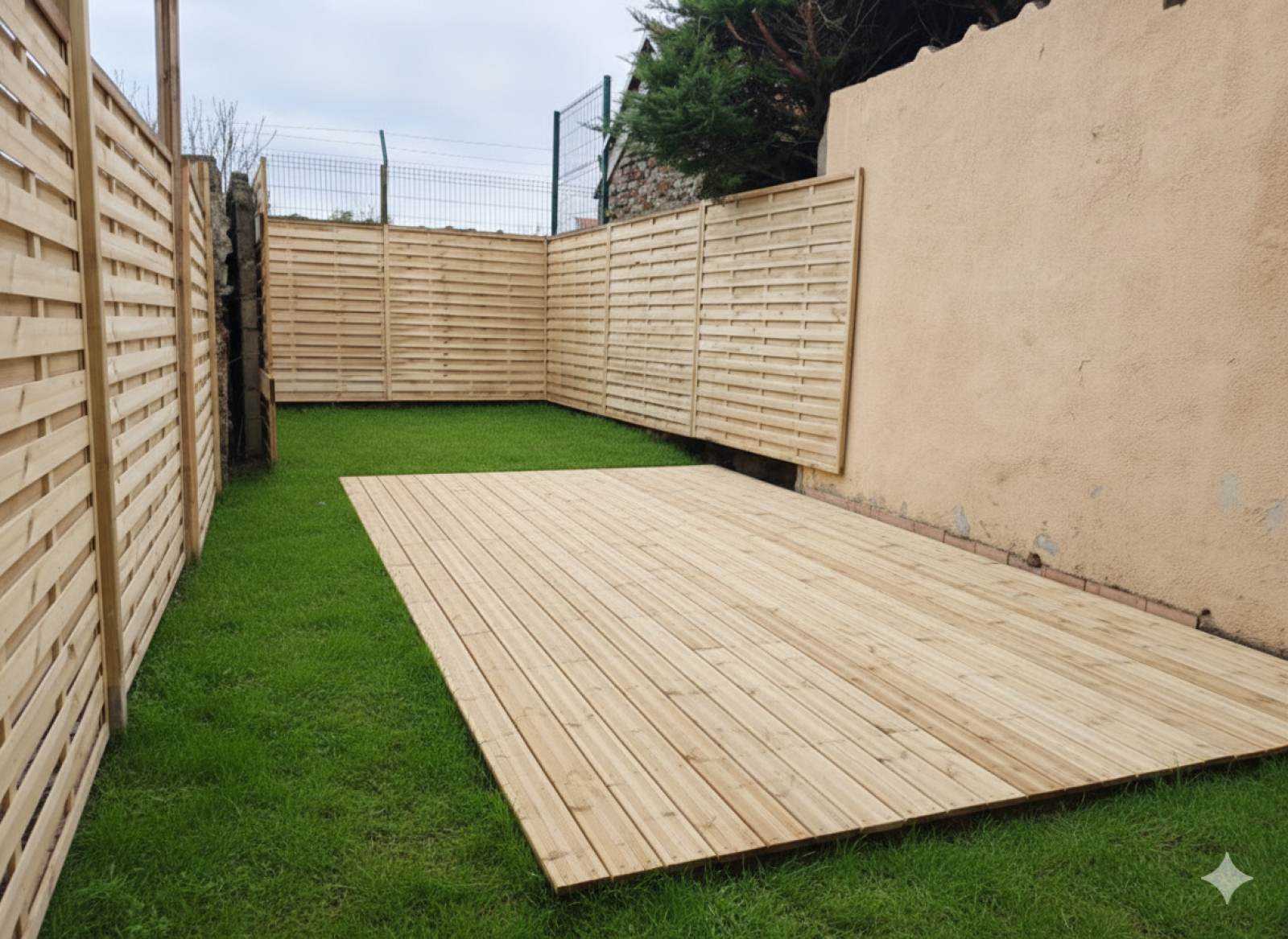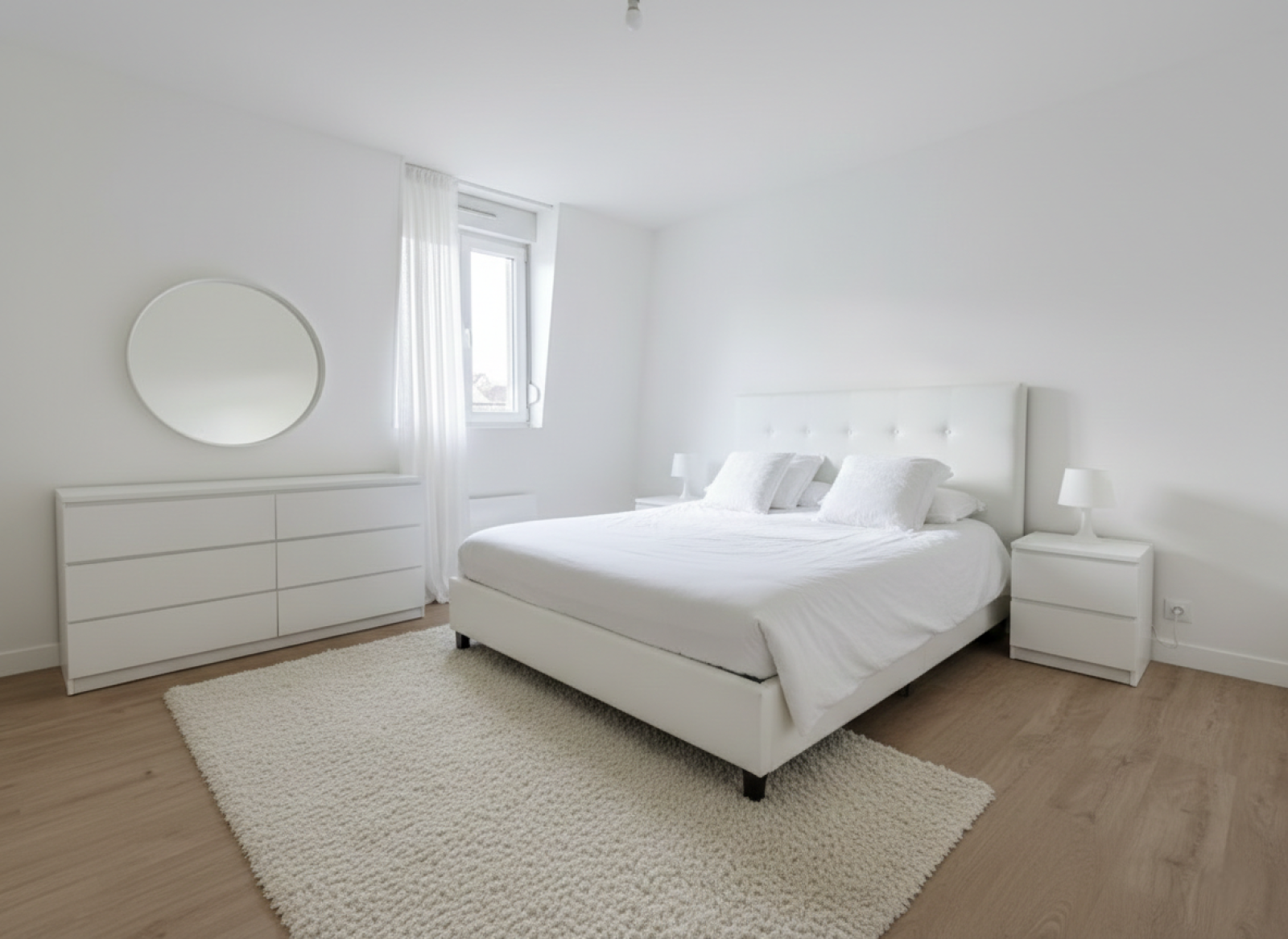 Elle se compose : Entrée sur séjour-salon ouvert (aménagement actuel par IA)