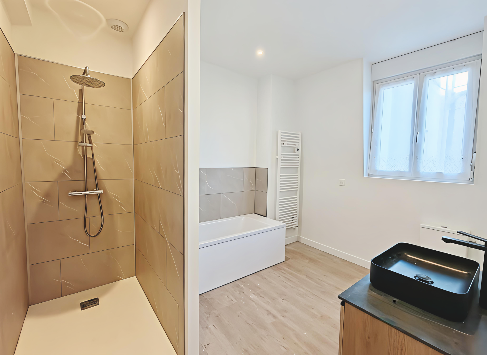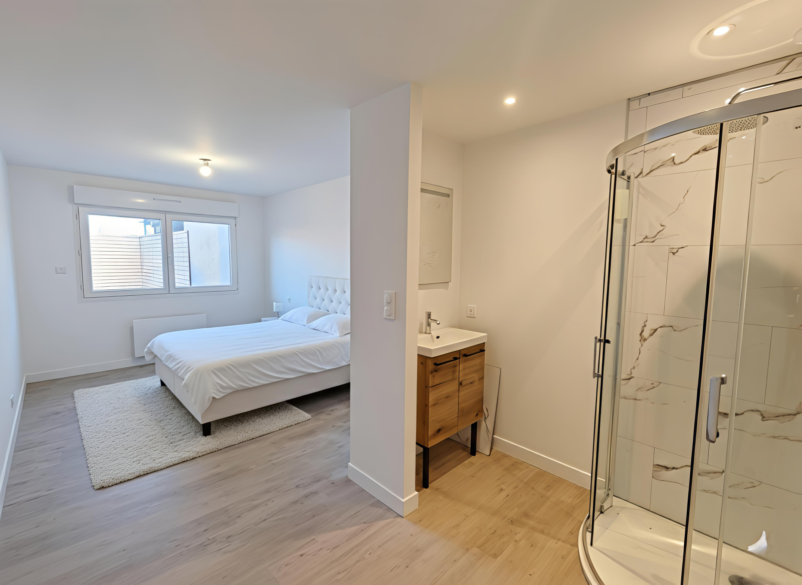 cuisine équipée (il est possible de choisir votre couleur de cuisine , photo non contractuelle ), un wc, cellier, chambre parentale avec une salle d'eau.